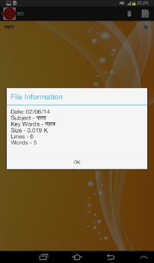 Just select your mother tongue from the settings and start typing. Input a subject and some keywords for you to easily remember about the contents of the file. You can search using subject or keyword or put a * in subject and view all files. Editing is possible after search and select the file to be edited.