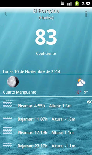 Esta App ofrece información sobre las mareas de toda España y Portugal para el año 2014. También podrás consultar, a modo de histórico, las del año 2011, 2012 y 2013. Mediante una interfaz sencilla, podrás navegar de manera amigable, obteniendo la información pertinente de las diferentes localizaciones costeras.