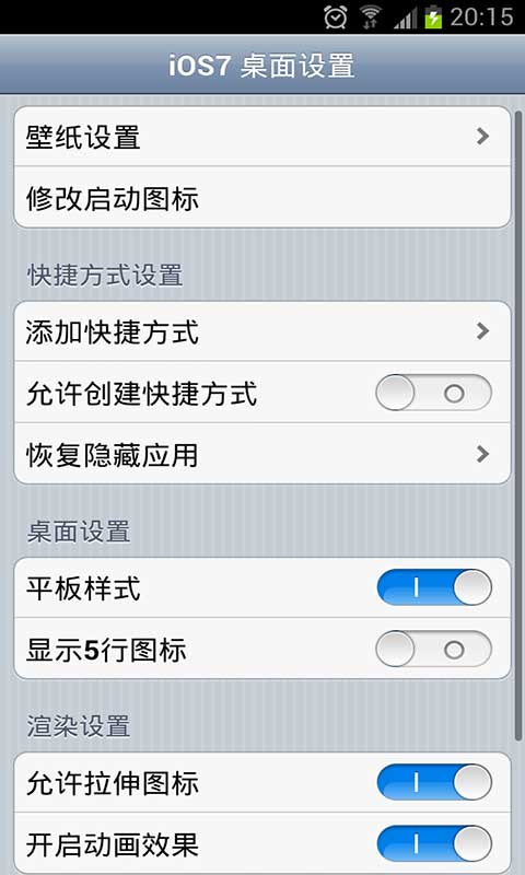 帮助用户在 安卓系统上也能体验 高清iOS7 的简洁及清新风格。