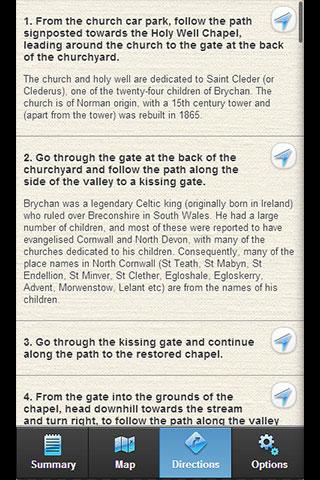 - Tracks your location using the GPS receiver on your phone or tablet, providing real-time information as you follow the walk route.