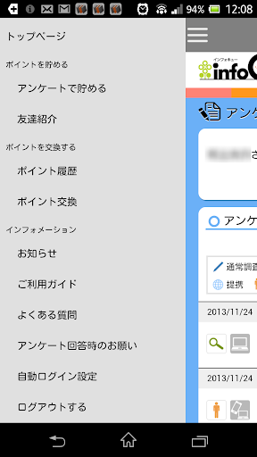 登録から、届いたアンケートの一覧表示、アンケートの回答にポイントの交換手続きなど、infoQのモバイルWEBサイトで行うすべてのアクションが可能です。