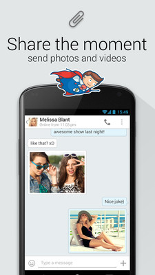 + 聊天时的贴图和笑脸:词语不够时,就发送贴图和笑脸。可爱、有趣、明快的符号,超过70个贴图和笑脸。现在就开始尝试!
