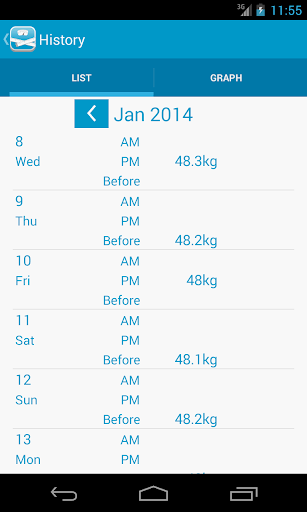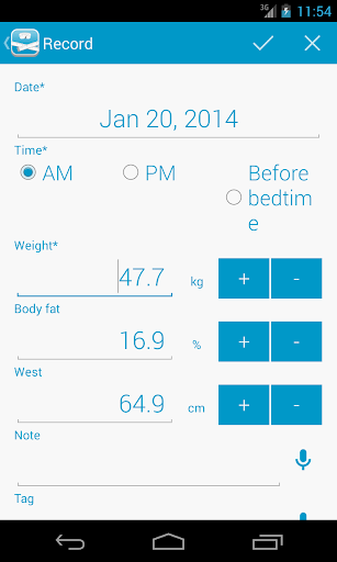 早晨,晚上,我可以西睡前記錄體重,身體脂肪百分比。