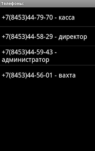 Позволяет звонить по указанным номерам, а при наличии подключения к интернету - посетить сайт организации и посмотреть расположение на карте.