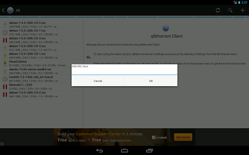 * Add torrents directly, by clicking the link on your device's browser or from downloaded .torrent files.