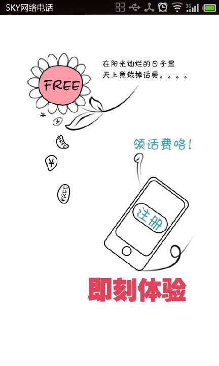 温馨提示:sky网络电话安全无暗扣,每次打电话几乎不产生流量,请放心使用