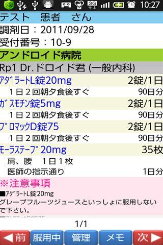 現在服用中の薬一覧が表示できます。自己管理、医師・薬剤師への連絡に役立ちます
