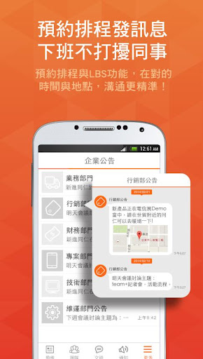 完全免費的team+結合即時通訊與臉書式工作社群討論,加上「可回報進度的工作指派」與「可預約發訊的企業公告」等貼心功能,以及TLS高安全等級加密技術,任何類型的工作團隊都能安心運用team+大幅提升溝通協作力。