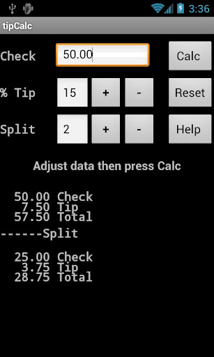 tipCalc is a easy-to-use tip (and percentage) calculator. It also handles splitting a check among a group.