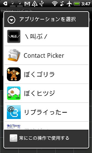 Android用twitterクライアント"twicca"用のマッシュルーム起動プラグインです。