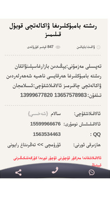 uqur维语应用是一款使用维语开发的免费资讯类应用,对新疆维族的朋友有非常大的帮助。可以对新疆本土最大的分类信息网站,海量生活信息免费查询、发布。