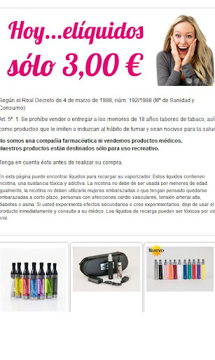 Tienda Online de Cigarrillos Electrónicos, Elíquidos y Accesorios. Cigarrillo Electrónico eGo, elíquidos de calidad y baratos, y los accesorios necesarios para tu ecigarro. Haz tus compras directamente desde la aplicación móvil o desde nuestra web www.vapor24.es Apúntate a vapear y al vapeo