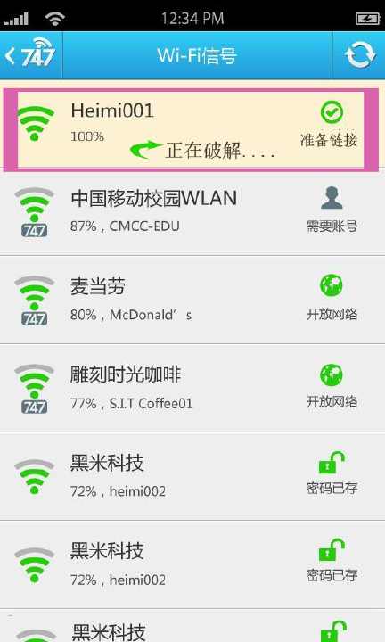 wifi破解万能钥匙是一款通过枚举法以及服务器云计算等手段破解周围所有加密wifi信息,目前除了三家运营商经营的收费无线网以外所有无线路由发射的wifi都可以获取密码!还在等什么,有wifi的地方就有他!赶紧破解吧!