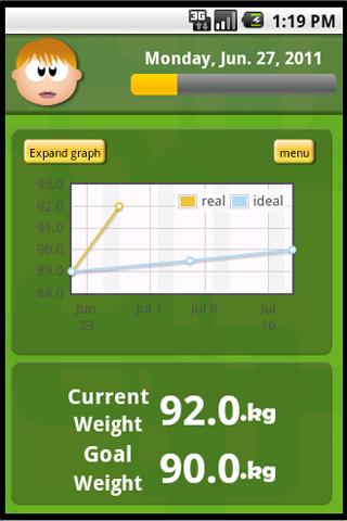 Application of Calories Counter and of tracking of the Weight, BMI and Fit measurements (waist, neck, chest, hips, thighs, calves).